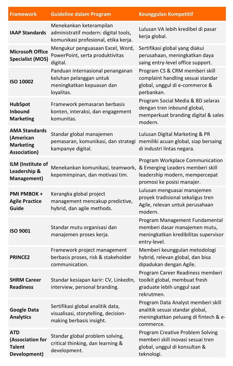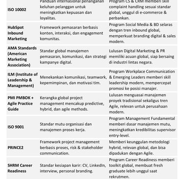 International frameworks seperti PMI, ISO, dan AMA bukan sekadar nama besar, mereka adalah jembatan agar skill kamu relevan di pasar global.